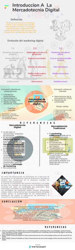 La infografía fue elaborada utilizando la plataforma denominada Piktochart, la cual permite diseñar los siguientes recurso digitales: